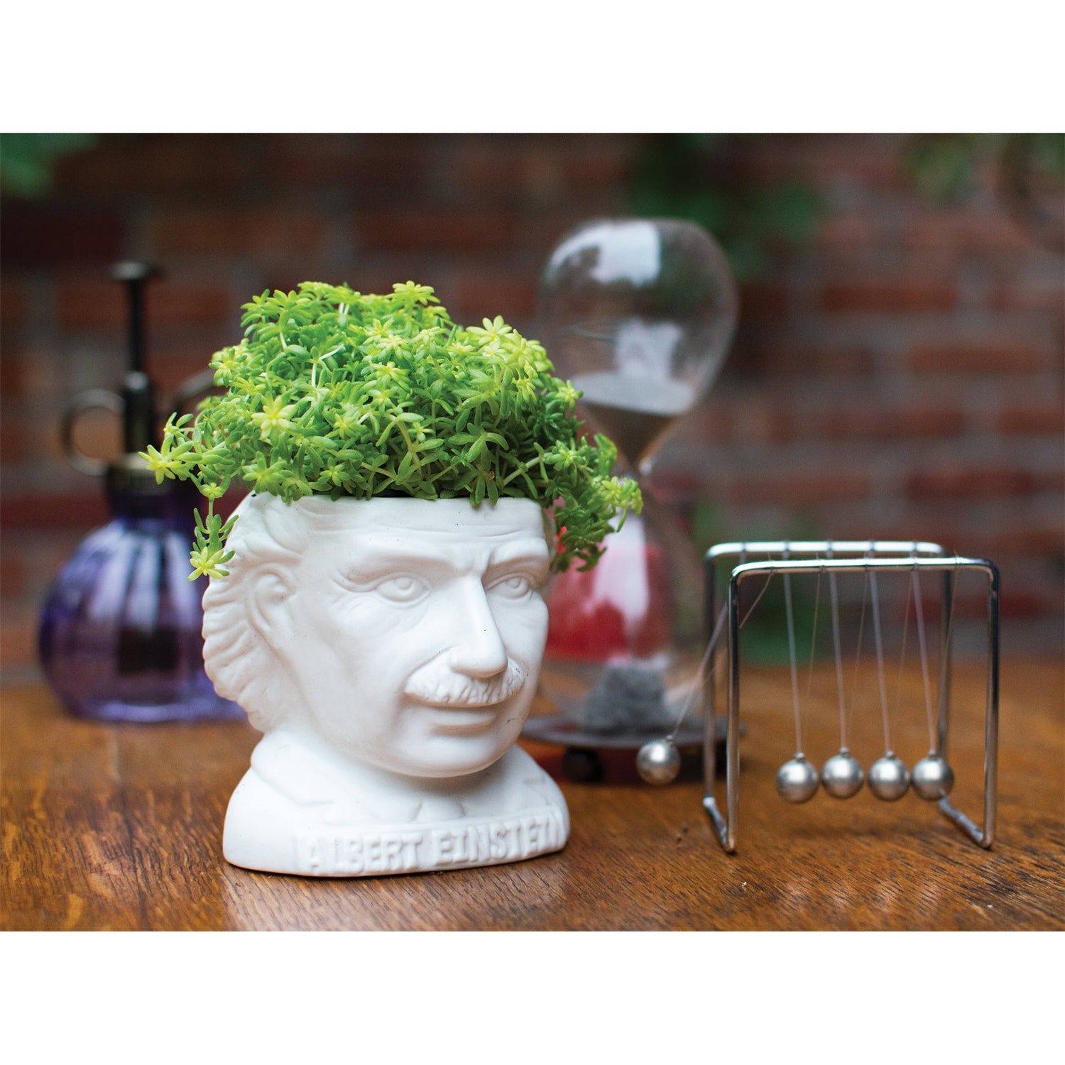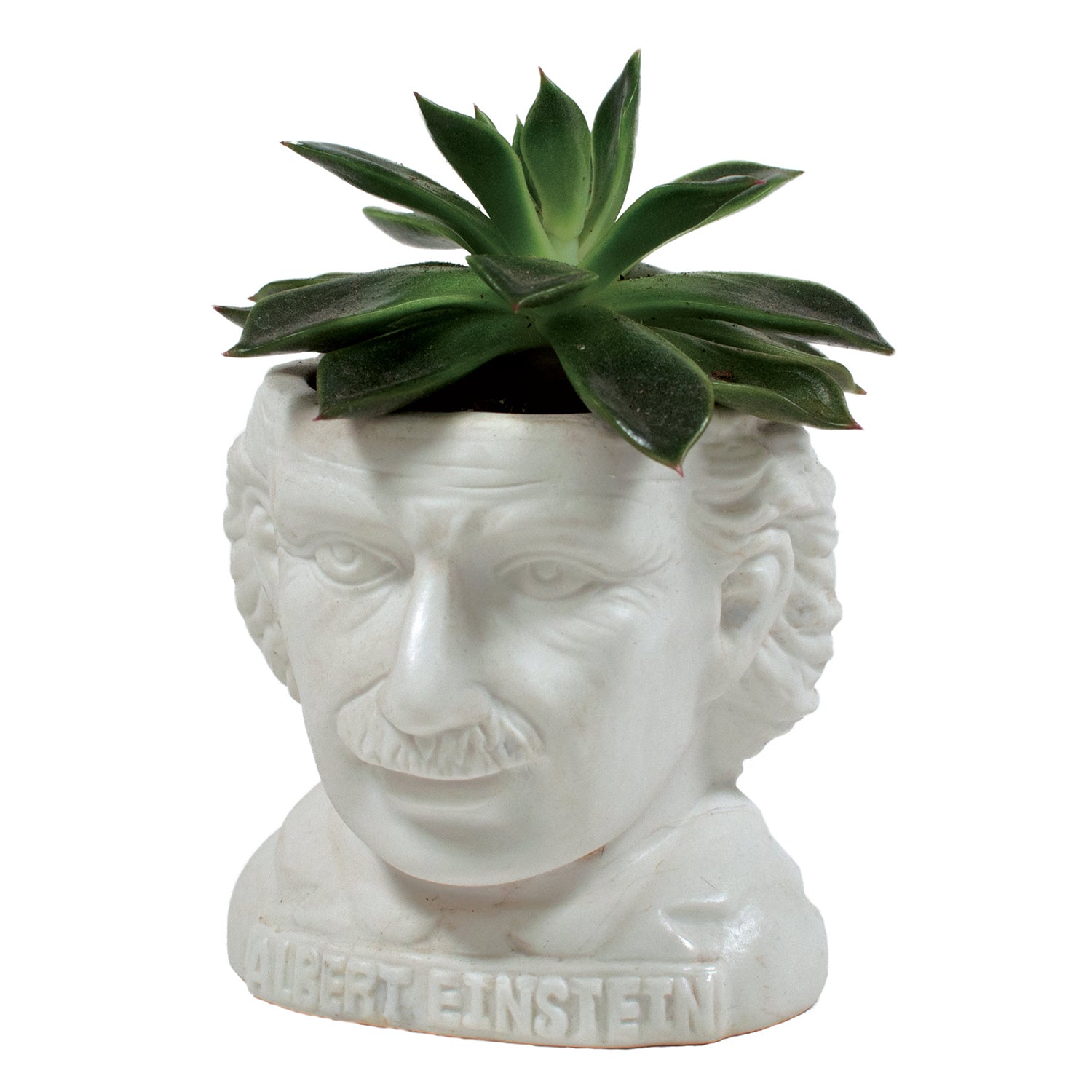 Albert Einstein, the later-life vegetarian, is now a smart ceramic accent. It's the perfect place to plant a lovely little Mammillaria elongata 'Cristata' you know, a brain cactus