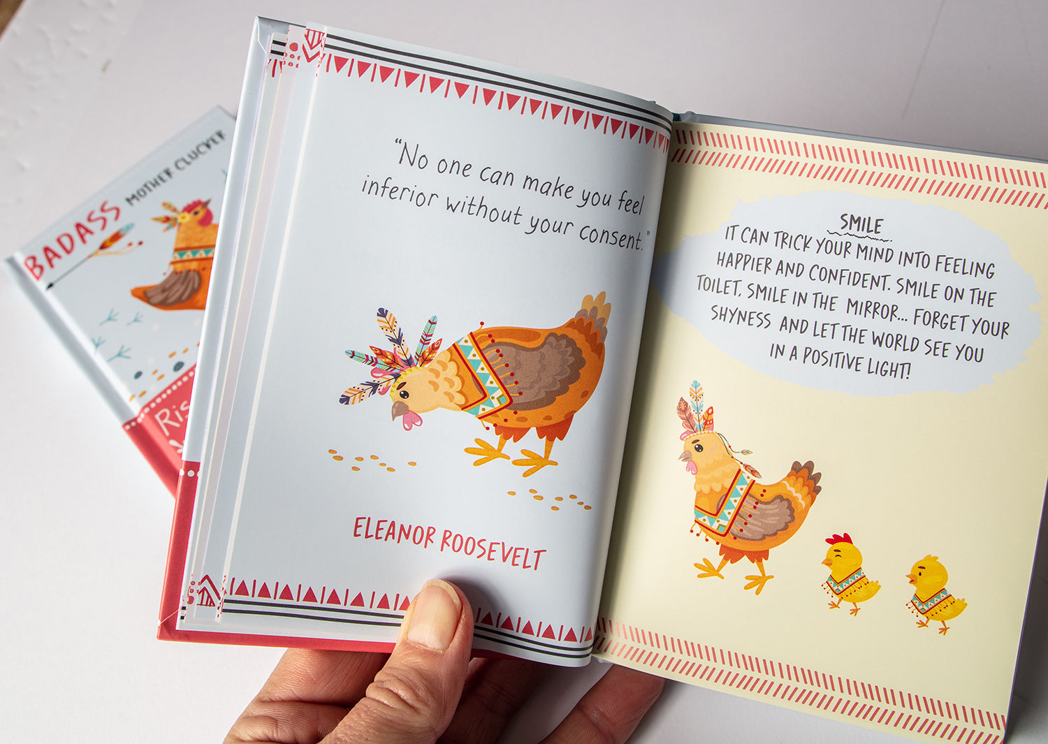 HEAD HELD HIGH - This gorgeous 'Badass Mother Clucker - Rise and Shine With Confidence' gift book is filled with 96 pages of confidence quotes, life advice, jokes and self-help tips, perfect to give you a boost in your every day!