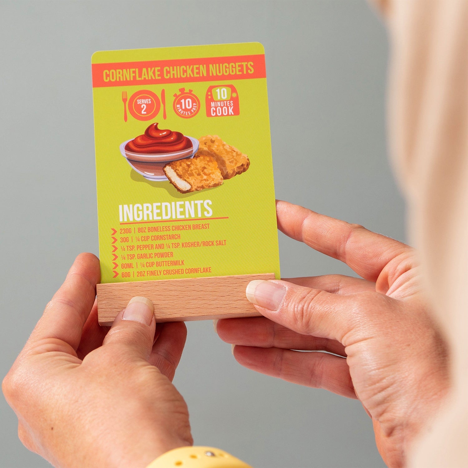 STAND TO ATTENTION! - This air fryer recipe flash cards are accompanied with a quality wooden recipe keeper card stand, so you can keep your recipe cards upright while in use!
