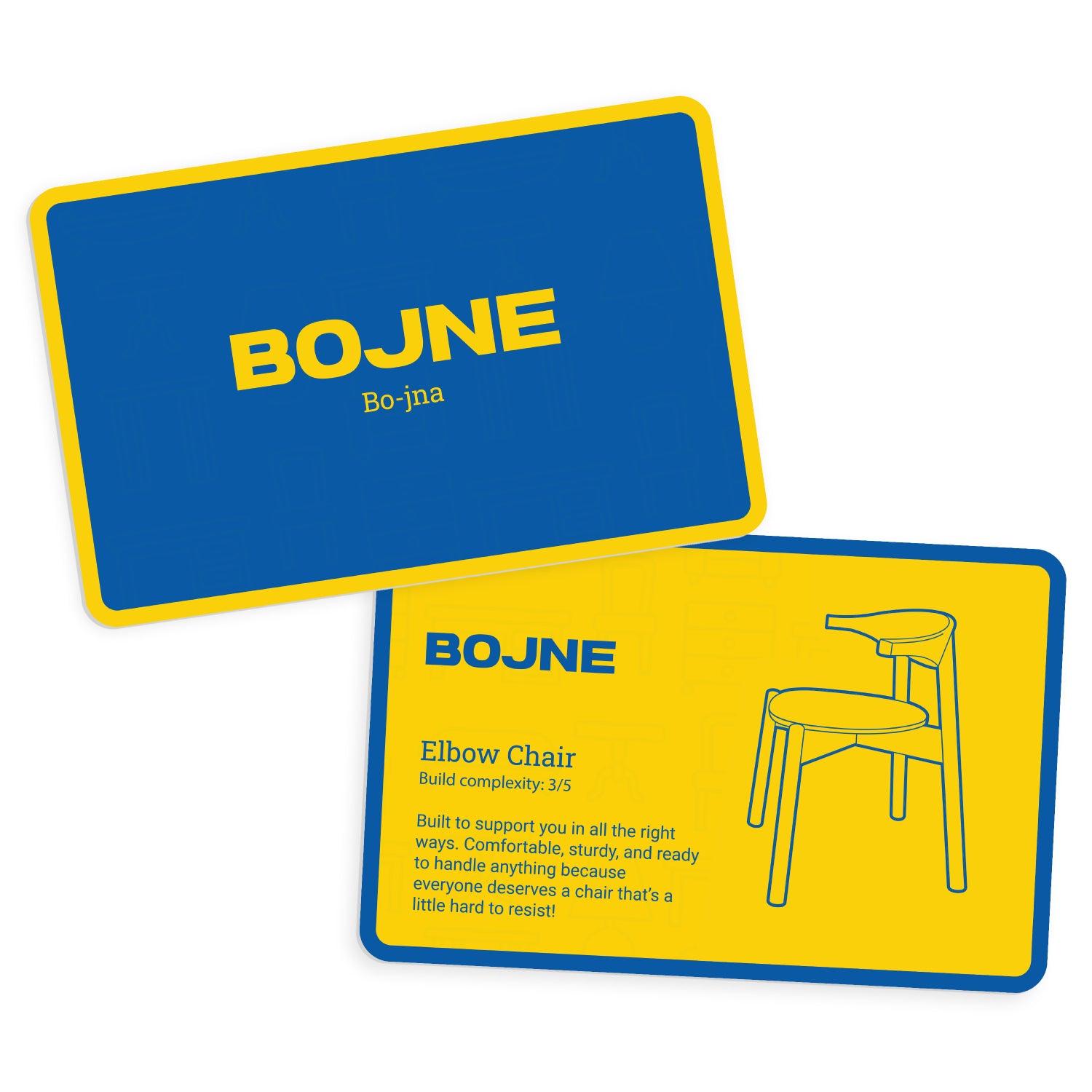 Get ready for a hilarious guessing game with Chair or Swear! In this fun and simple challenge, you'll be presented with Swedish words, and it's up to you to decide: is it a swear or the name of an flat-pack chair? Test your instincts, laugh at the wild guesses, and discover how much you really know about Swedish slang and Scandinavian furniture! Pair this with a side of meatballs for the perfect game night!