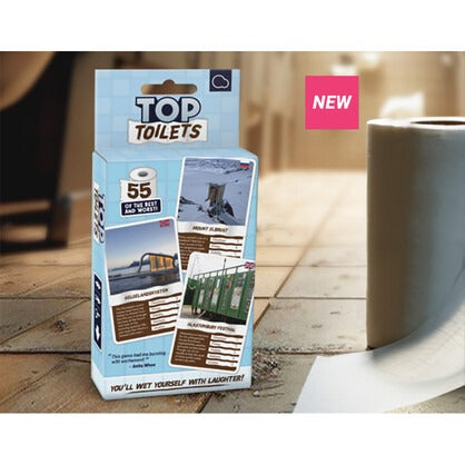 Top Toilets is an edge-of-your-seat global tour of the world's best and worst water closets. We've rated 55 lavatories from the luxurious to the leaky, lousy, and downright ludicrous. Players must use these to outscore their opponents and steal every card in the game. Only the last player standing will be crowned King of the Throne.