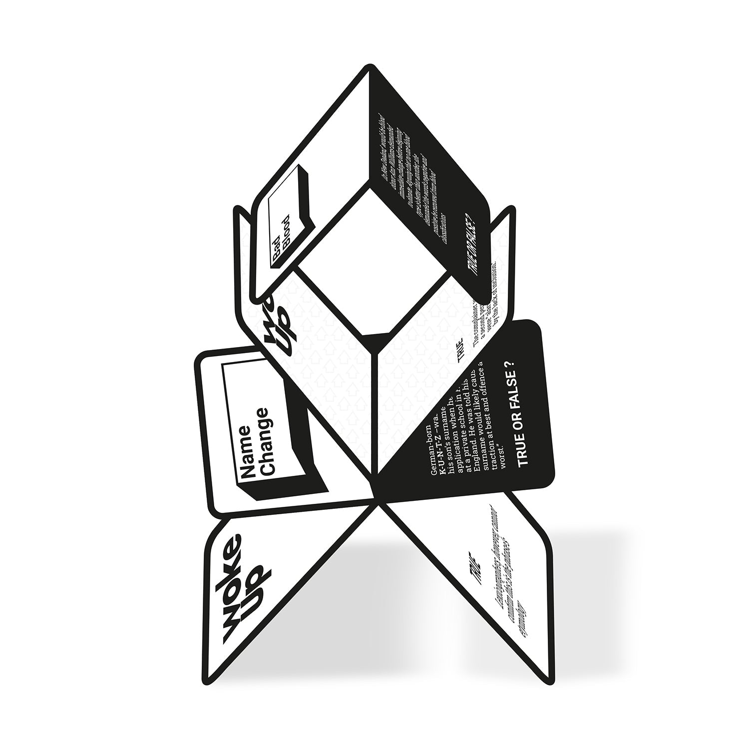 The true or false trivia cards contain news stories relating to woke culture. You've gotta decide if you think the story is real or fake. Get it right and keep the card; Fold it in half, stack it, and bask in the glory of how much taller your tower is than anyone else's - especially your parents!