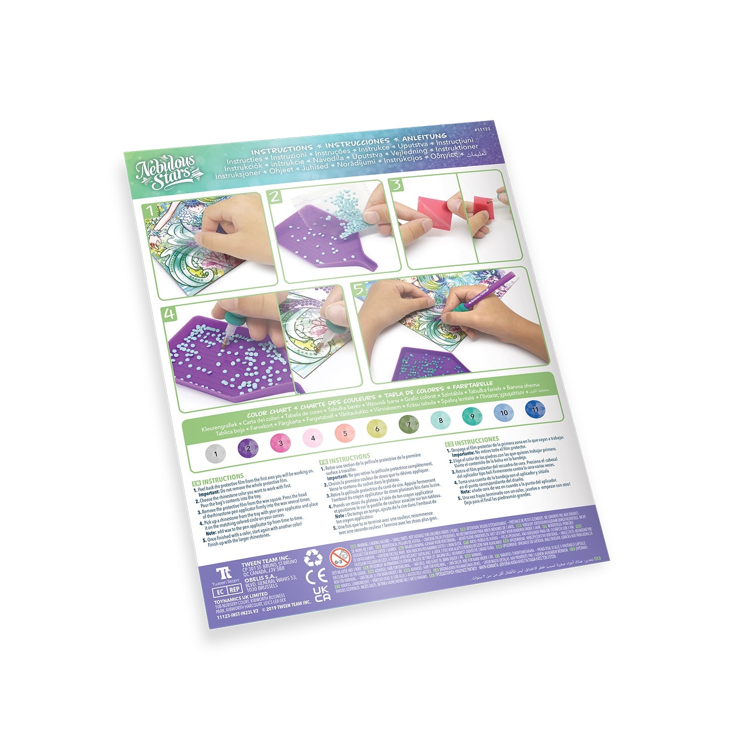 Create 2 bedazzled masterpieces! Use a special applicator to apply micro-gems to adhesive templates. Follow the numbers associated with each color. The final result is amazing!