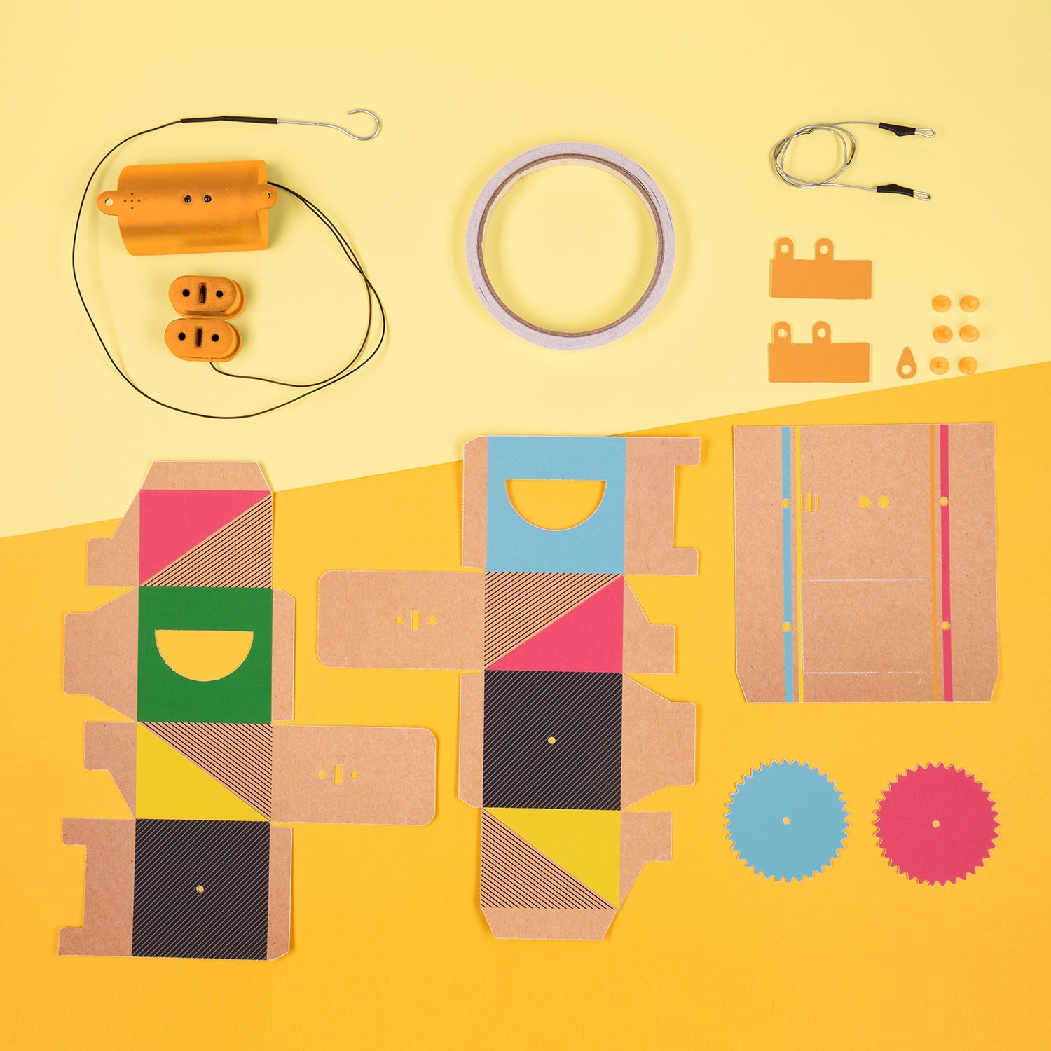 Everything you need to make your very own buzzer game. Simply fold and stick the card nets together and pin in the electrical components. You can even bend the wire to any shape you want.