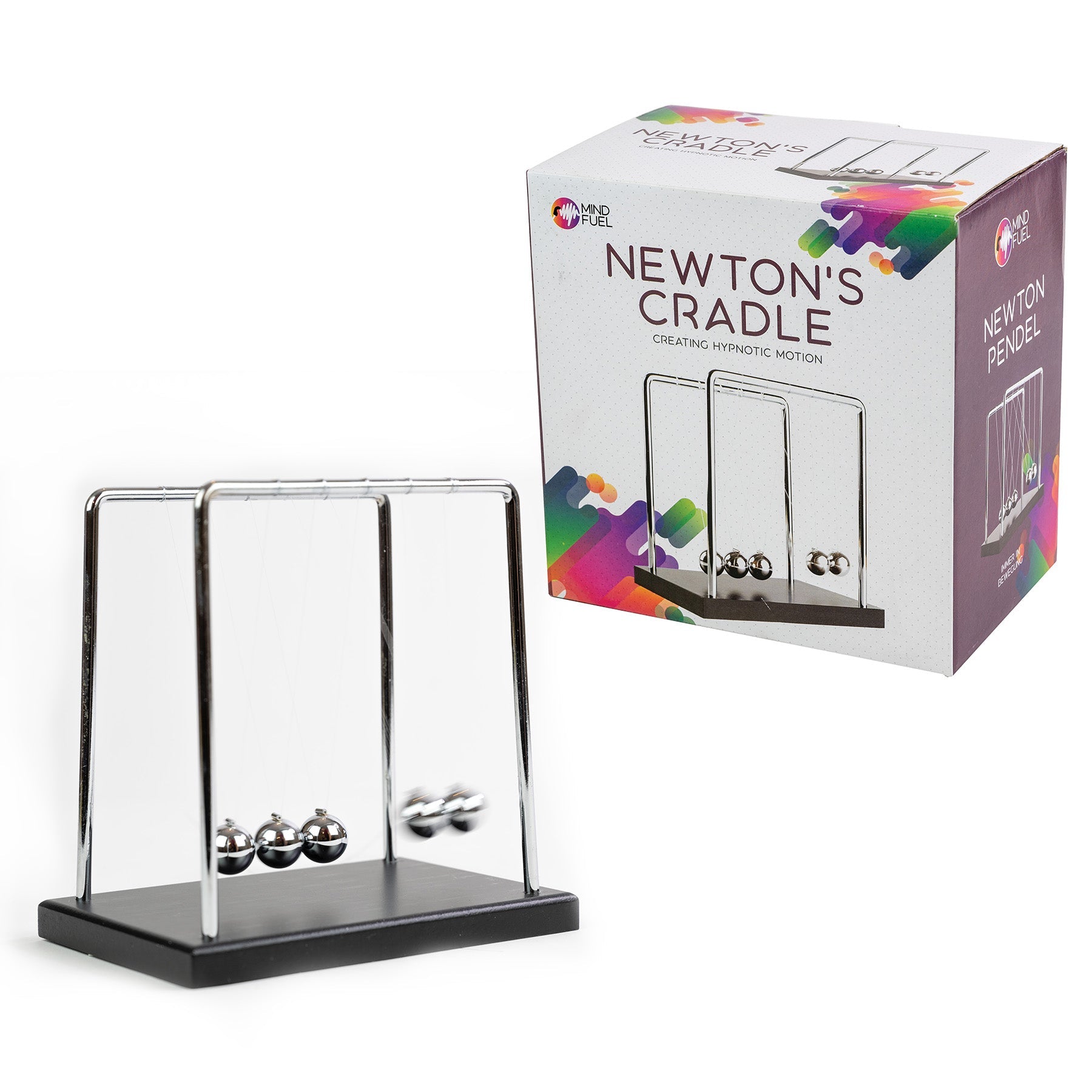 For every action there is an equal and opposite reaction. Named after the famous scientist Sir Isaac Newton this executive toy perfectly demonstrates conservation of energy and momentum. Each ball is attached to opposite sides of the frame by equal length strings. Pull back and release one of the balls and let it swing back, creating a force that propagates through the other balls creating a hypnotic motion.
