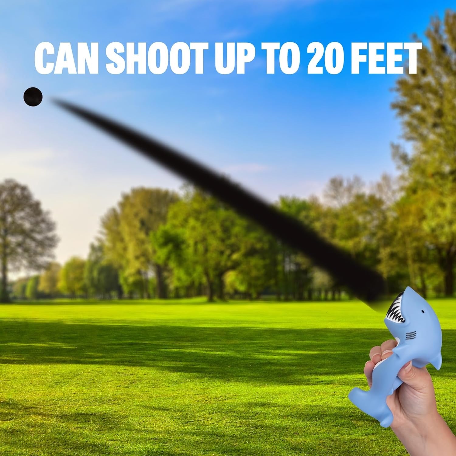 Ready, aim, POP! Squeeze the Shark Popper to pop a soft foam ball up to 20 feet!