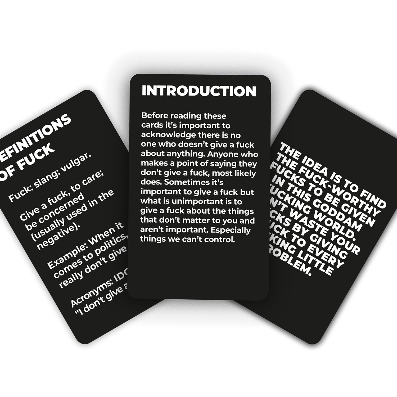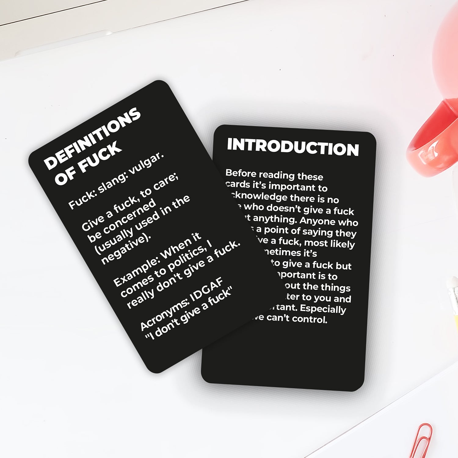 Description: Do you know someone who needs to give less f**ks? This no bullsh*t card pack features affirmations and advice on how to care less and get more of the life you want.