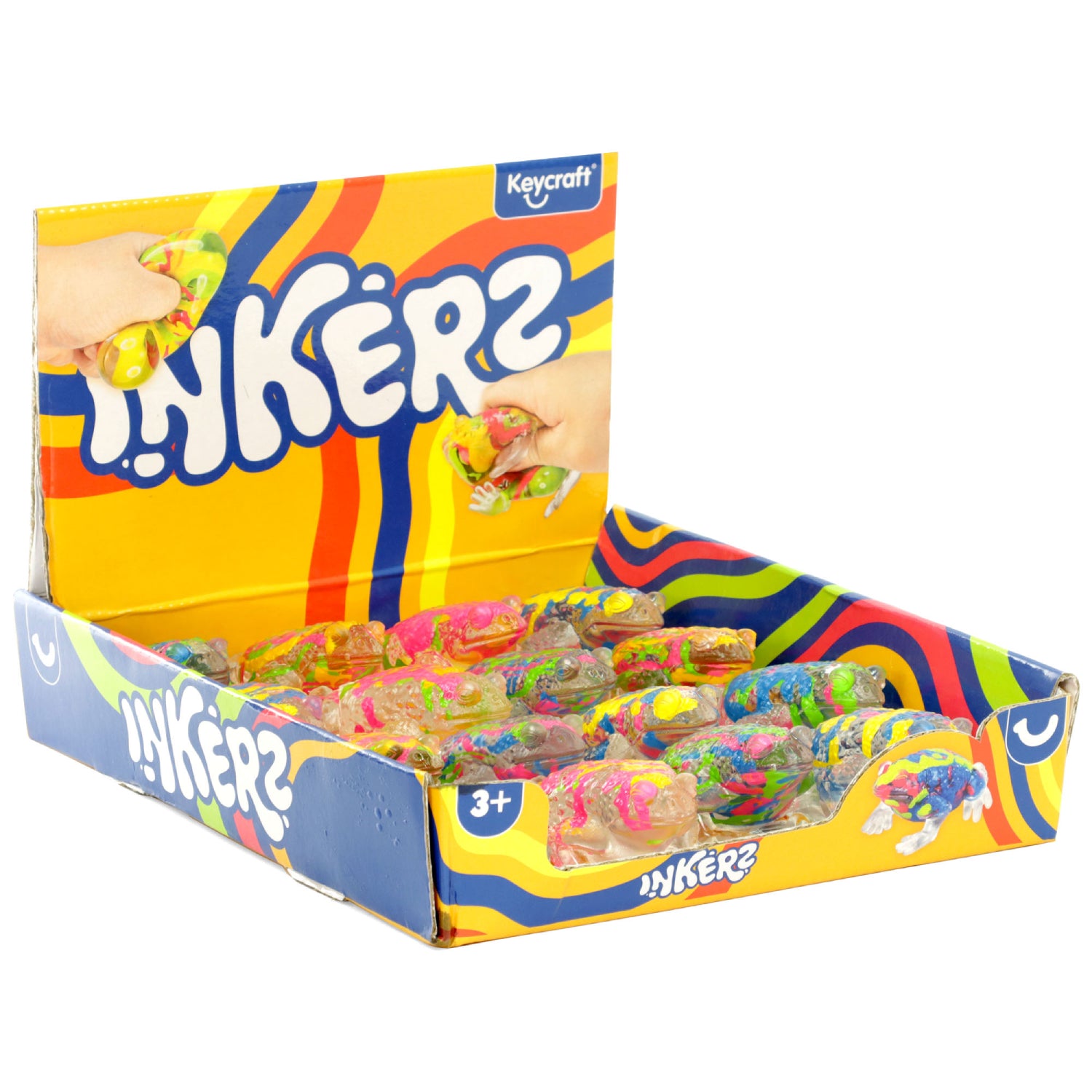 Explore the sensory experience of paint without the mess! This irresistible frog sensory toy is sure to become a best seller in your store. Each toy has a unique mix of paint drips which have been safely sealed within the toy. Perfect for adding a touch of extra fun to your merchandising displays. Enjoy a tactile adventure as you squeeze and squish, watching as the mesmerising drops of paint glide through your fingers. Explore a variety of vibrant colours, and let our branding and displays invite you into a sensory play adventure with Inkerz – where playfulness meets innovation!