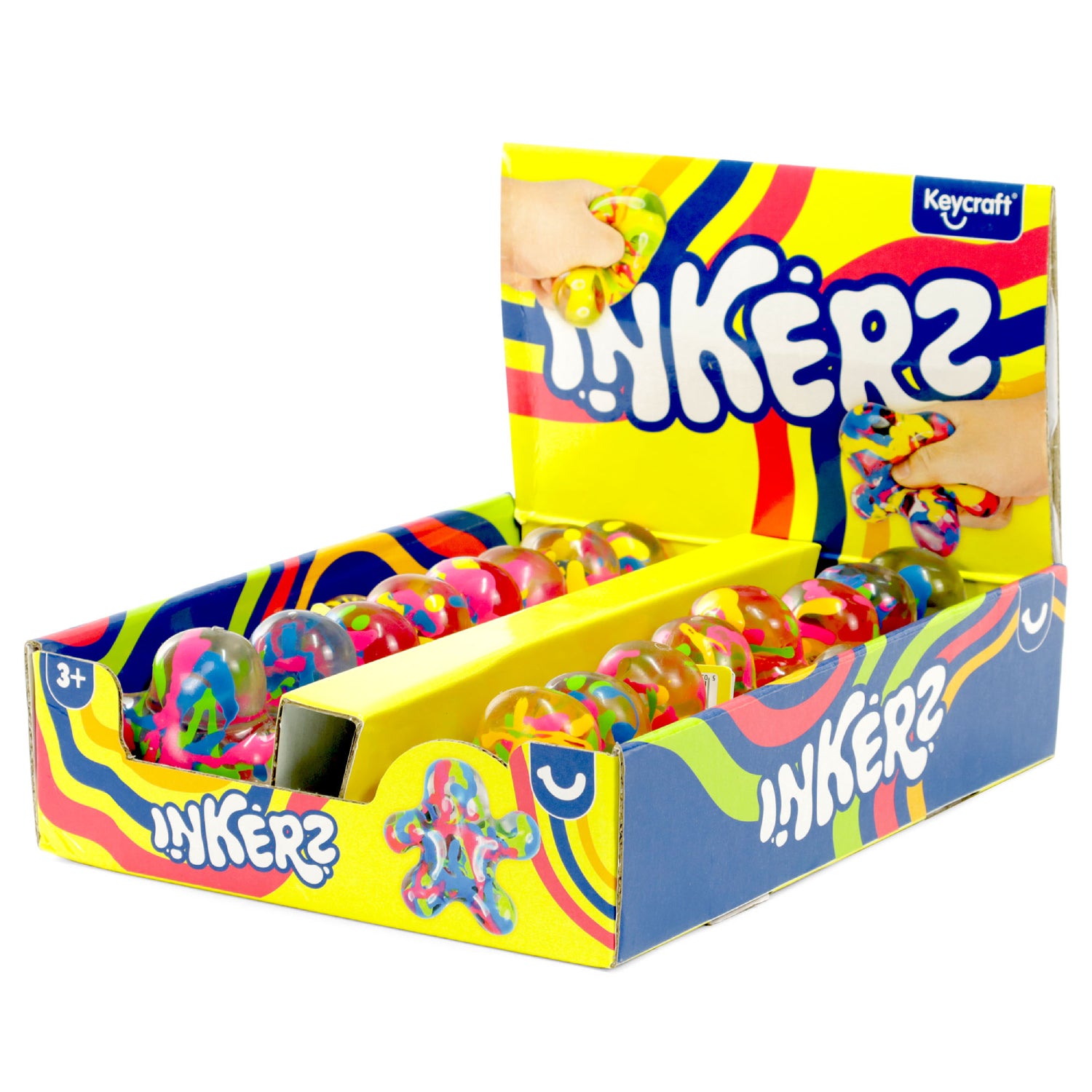 Explore the sensory experience of paint without the mess! This irresistible man sensory toy is sure to become a best seller in your store. Each toy has a unique mix of paint drips which have been safely sealed within the toy. Perfect for adding a touch of extra fun to your merchandising displays. Enjoy a tactile adventure as you squeeze and squish, watching as the mesmerising drops of paint glide through your fingers. Explore a variety of vibrant colours, and let our branding and displays invite you into a sensory play adventure with Inkerz – where playfulness meets innovation!