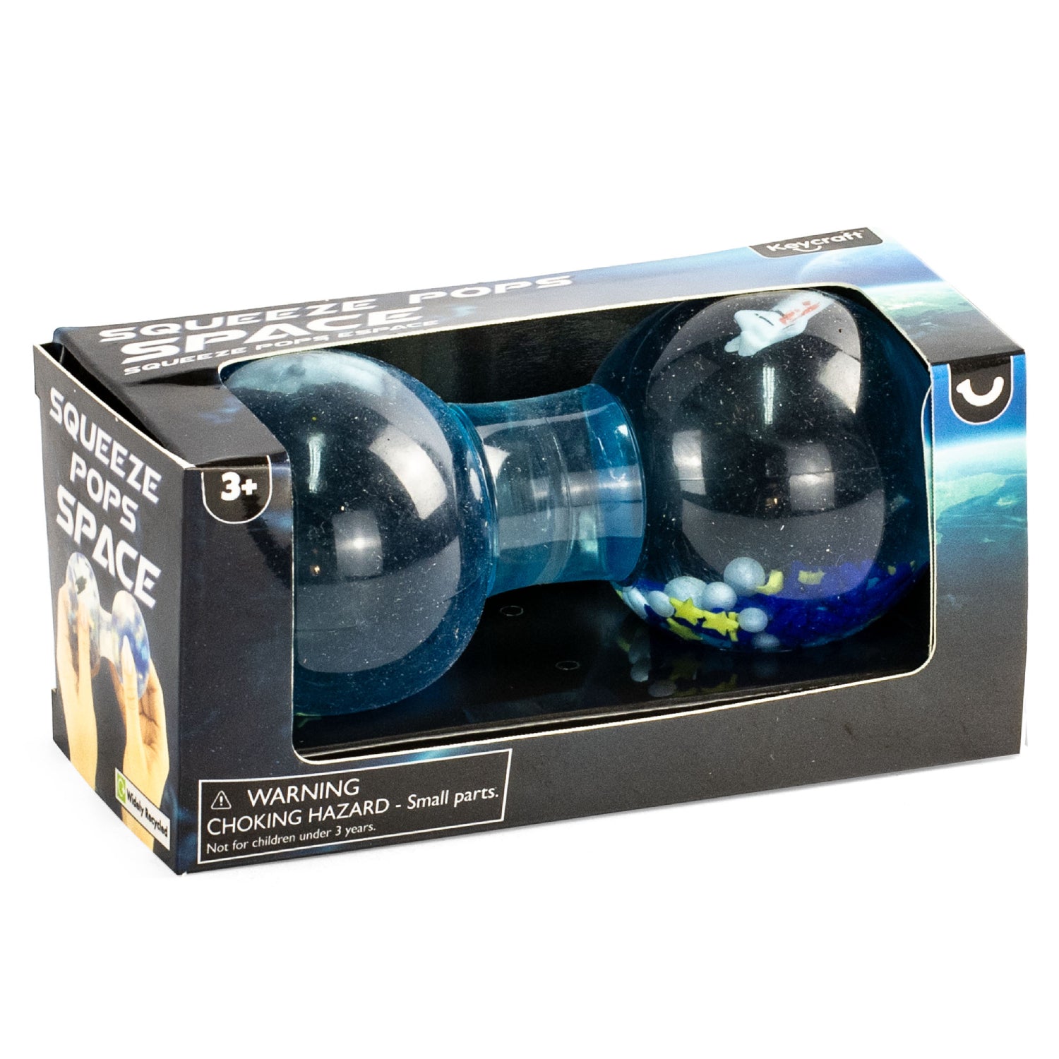 Meet the Squeeze Pops Space - your mesmerising companion for sensory fun! This unique toy features two spheres filled with water and glitter, connected in the middle. Hold one sphere in each hand and squeeze gently, then watch as a fascinating space scene comes to life and glides through from one sphere to another, creating a mesmerising display of swirling glitter. Perfect for sensory exploration, this toy provides hours of tactile delight and visual stimulation. Compact and easy to carry, it's ideal for on-the-go play. Get ready to squeeze, watch, and delight with the Squeeze Pops Space - the perfect wholesale toy for sensory seekers and curious minds!