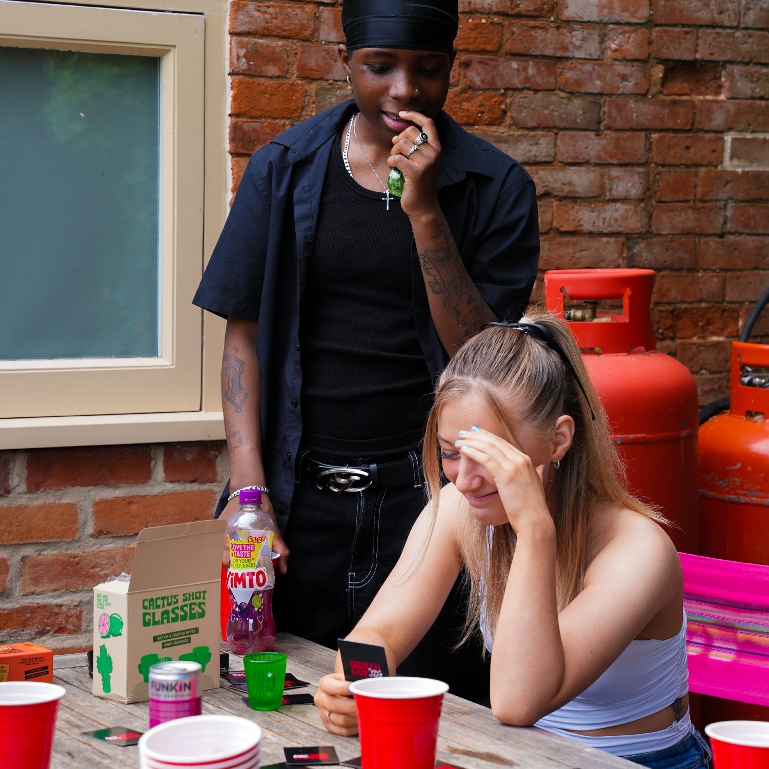 Spread the cards around a cup and begin to play! Every time a 'Death Cup' card is pulled, you must pour some contents of your drink into the cup in the middle. Do this every time till the last death cup is pulled! whoever pulls the last death cup must finish the drink in the middle and the game is over!
