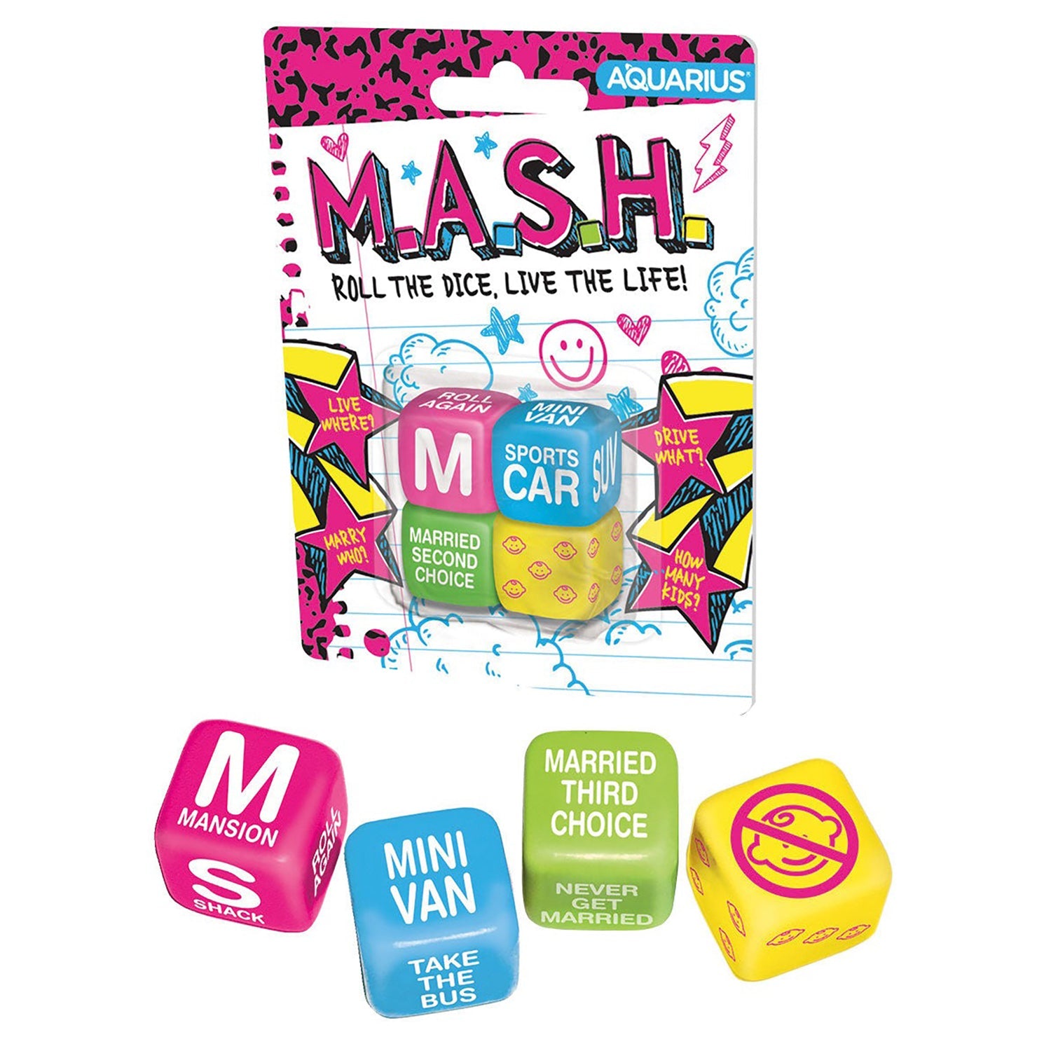 The classic M.A.S.H (Mansion, Apartment, Shack, House) schoolyard game now has a dicey twist!