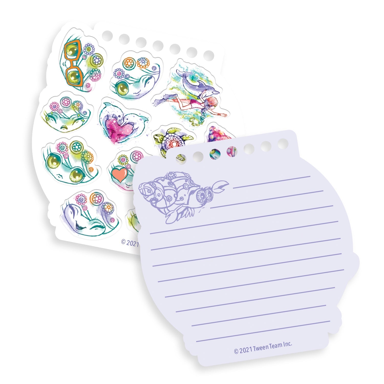 Super cute and practical mini note pad! Includes metallic ink pencil with chain and stickers.