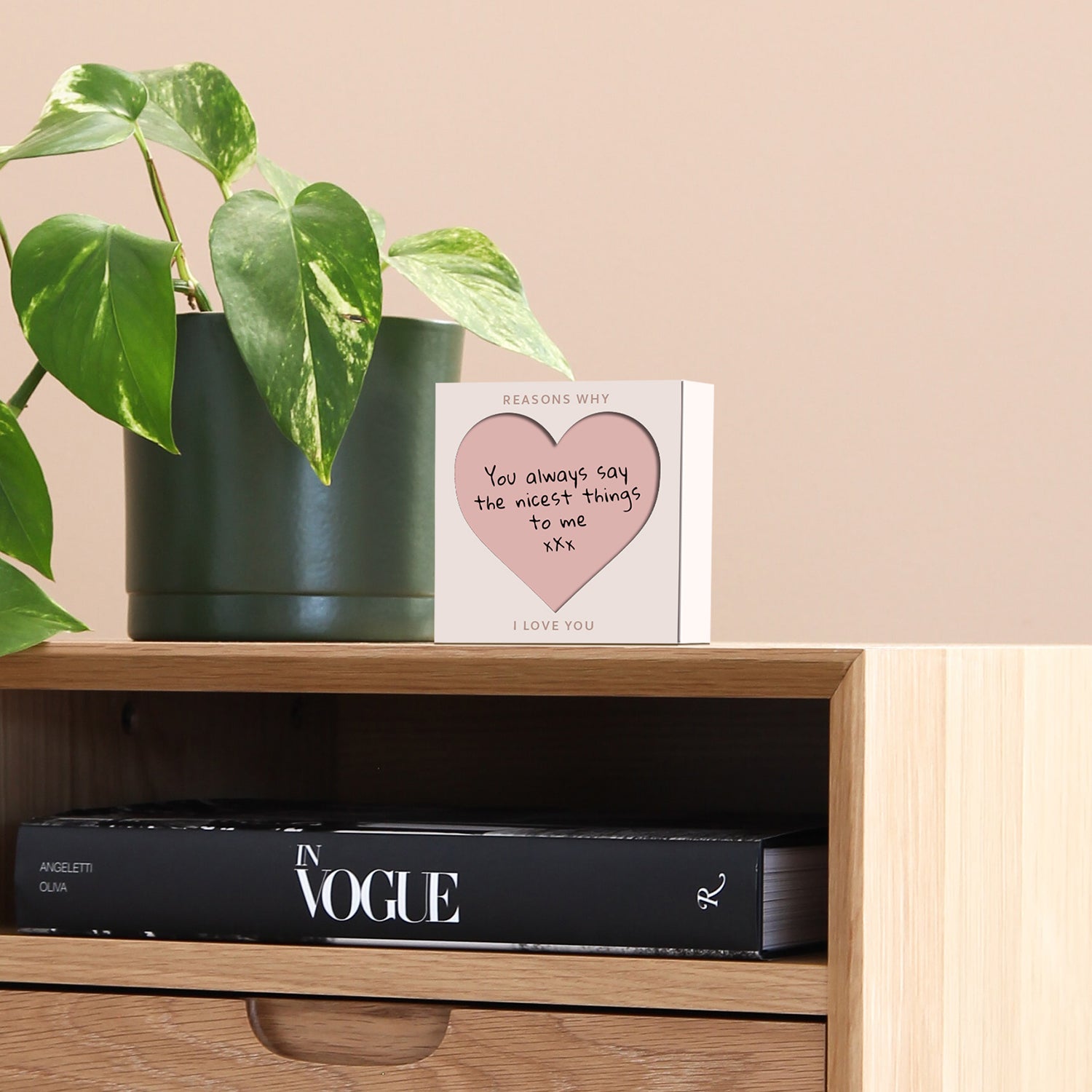 The heart frame sits on their desk or shelf as a reminder of how much they mean to you. They simply slide the front card out, then slide it into the back each day whenever they want to smile.