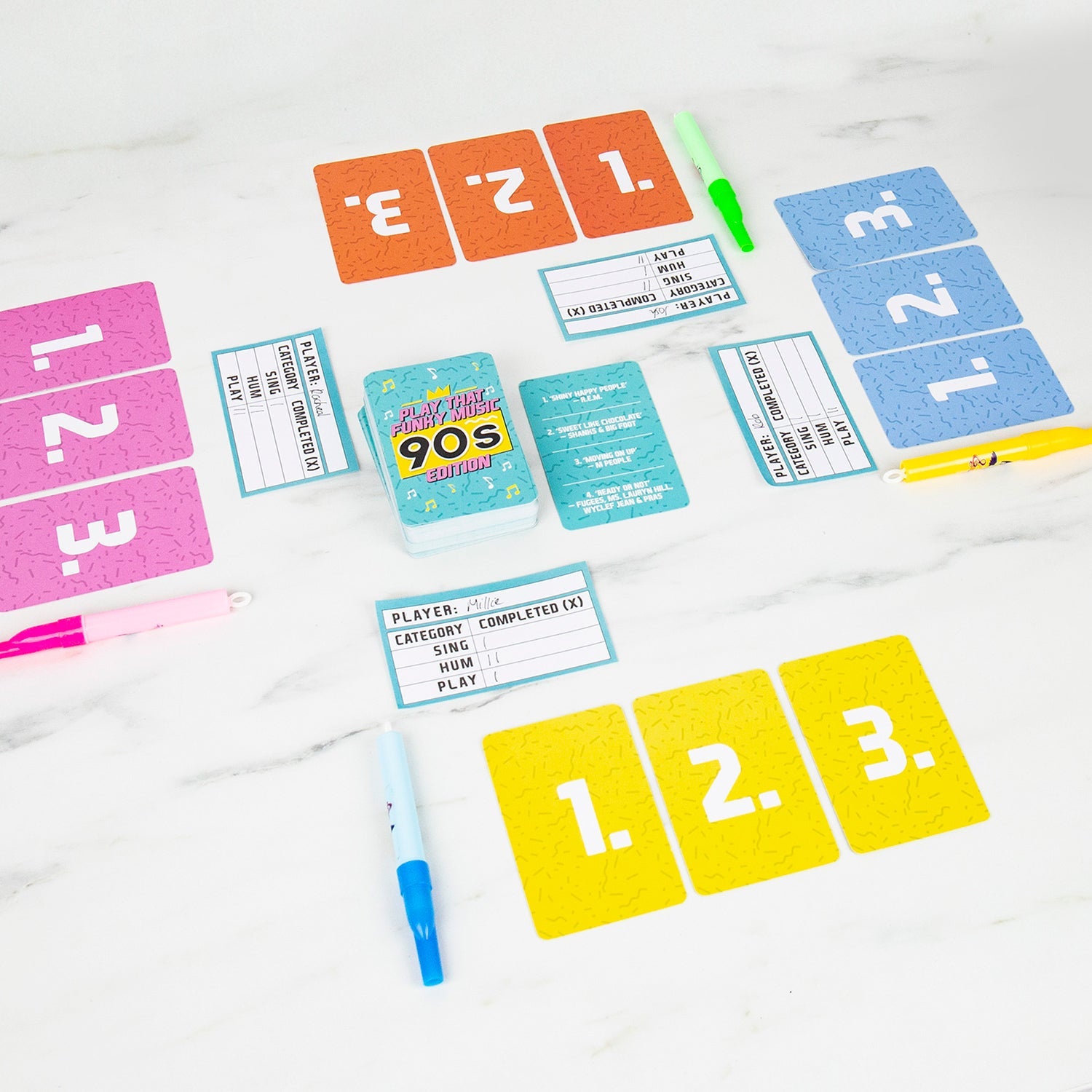 Test your music skills as you play classic 90s tunes for your opponents to guess in this fun-filled party game! Seems easy enough right? Well you'll have to either play the slide whistle, hum or sing each song!