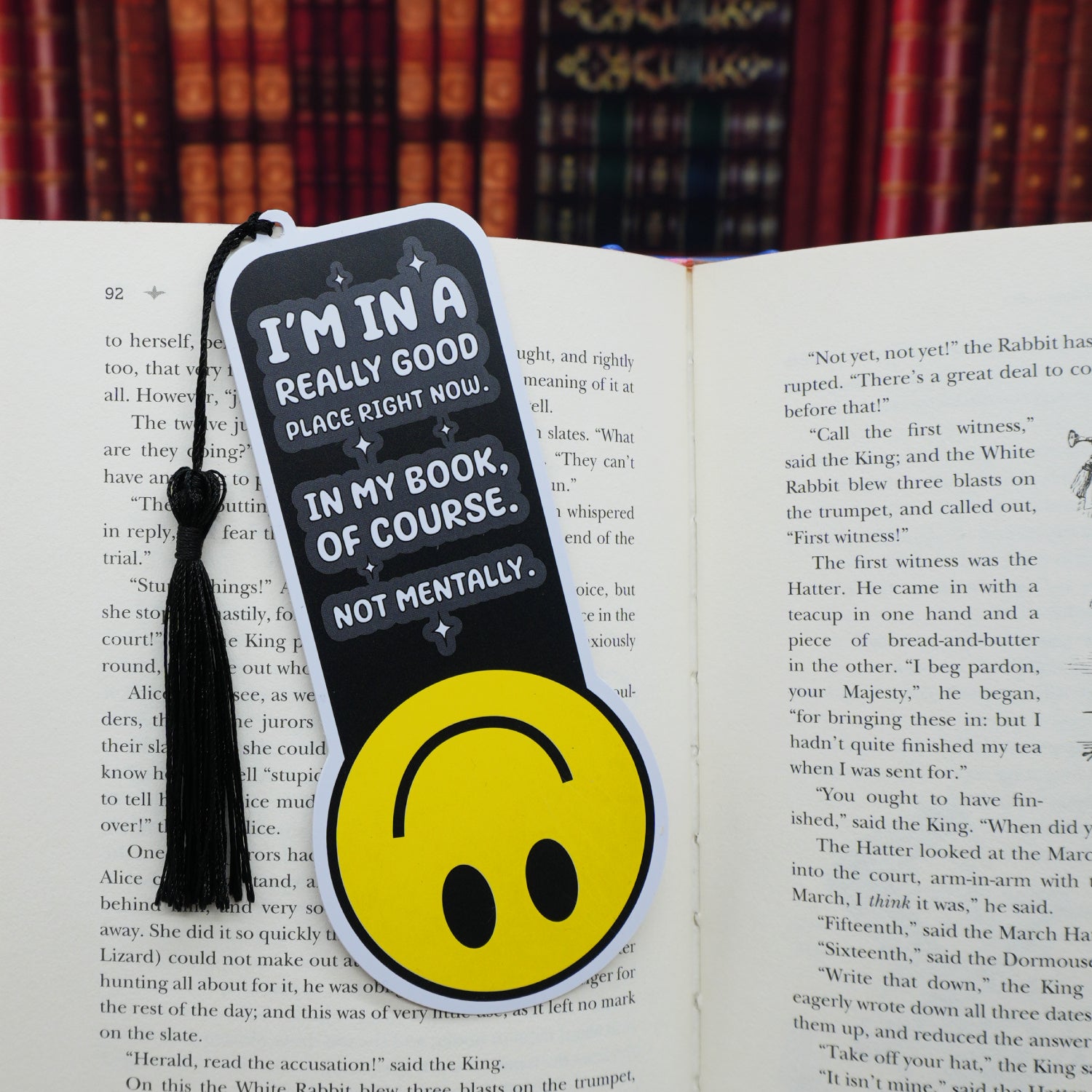Each bright, bold design features a funny and relatable bookish saying and is topped with a metallic, silky tassel.