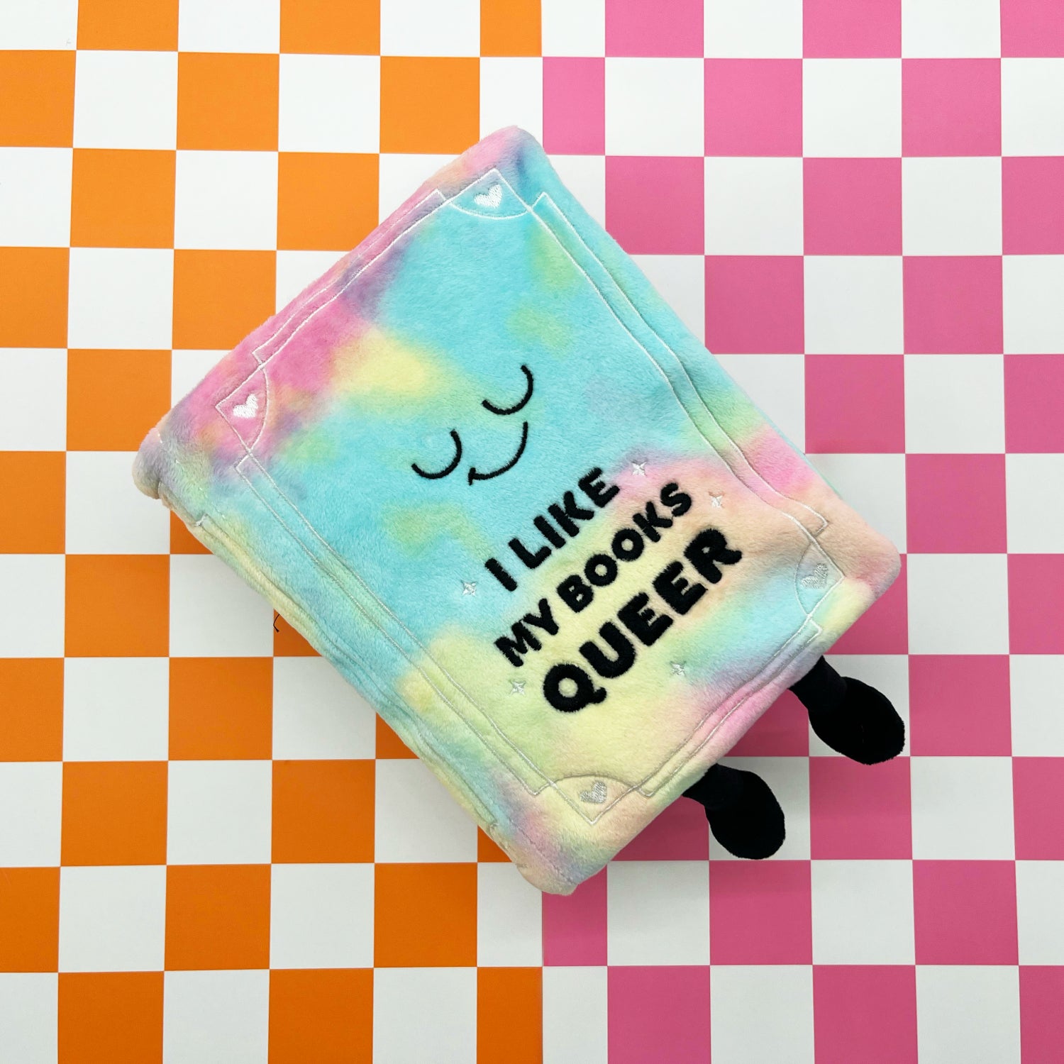 This Punchkin loves their books queer. In their romance novels, love always wins because they know we all have the right to love whoever we want! Sure, deep down, lesbian love stories might make their kitty cat clench, but they enjoy reading all queer love stories. Their blissful expression, dreamy color palette, and embroidered hearts make this Punchkin a must-have. It would be the perfect gift for anyone’s reading shelf.
