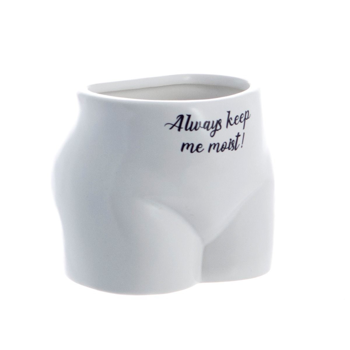 Our 'Put Some Plants On!' plant pot range makes the perfect novelty gift for any plant-loving friend! Our 'Always Keep Me Moist' pot is shaped after the female body, and features a hilarious pop-art style text decal, making it great for cheeky cacti or saucy succulents! Ideal for bringing some raunchy humour into your home or as a desk accessory, these fun, saucy plant pots make great gifts for friends on their birthday!